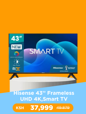 Power Tools Phones Electronics Home Appliances Bedroom Audio Kitchenware SolarSuper Deals VIEW ALL Gld 43" inch FHD Frameless Smart/Android TV,BLUETOOTH, InbuiltDecoder/+Extension+Bracket KSh 22,399 Bed Skirt KSh 2,999 TOLSEN HIGH PRESSURE WASHER 1800WATTS AND 1885PSI Yellow KSh 16,500 Ingco CAR WASH MACHINE WITH 2200PSI AND 1800WATTS KSh 14,000 High pressure washer HPWR15028 1500W KSh 14,000 AICO ELECTRIC CARWASH MACHINE KSh 56,000 Solarmax 20A Digital Solar Charger Controller Dual USB KSh 2,200 Solarmax 100AH Solar Battery + Inverter + Charge Controller KSh 13,000 120W SolarMax Solar Panel KSh 7,500 JTC Pro 2.1CH Speaker System 12000W KSh 8,300 Nunix Sub-Woofers Mini-Home Theatre KSh 7,999 Ampex 3.1 CH 40000Watts-Bluetooth Subwoofer KSh 6,499 No products found Power ToolsVIEW ALL 21V MAKITA CORDRESS DRILLSET KSh 8,000 TOLSEN POWERFUL AND HIGH QUALITY DRILLSET KSh 7,000 1/2” Socket Set Ingco HKTS12122 12Pcs KSh 2,500 77 Pcs tools set KSh 12,000 117 Pcs DRILLSET WITH 750WATTS DRILL KSh 6,499 12VOLTAGE CORDDRESS WITH 135 PIECES TOOLSET KSh 7,000 No products found Electronics VIEW ALL Syinix 43″ ,Smart Android TV, Frameless, 24 Months Warranty – Black KSh 32,000 Nunix Sub-Woofers Mini-Home Theatre KSh 7,999 JTC Pro 2.1CH Speaker System 12000W KSh 8,300 Skyworth 50” 4K UHD ANDROID 10 TV,VOICE CONTROL,NETFLIX,WI-FI KSh 53,000 40 INCHES VITRON SMART ANDROID TV, NETFLIX, YOU-TUBE KSh 22,000 Gld 43" inch FHD Frameless Smart/Android TV,BLUETOOTH, InbuiltDecoder/+Extension+Bracket KSh 22,399 Ampex 3.1 CH 40000Watts-Bluetooth Subwoofer KSh 6,499 No products found Appliances VIEW ALL Quick dry microfibre mop KSh 3,499 Nunix Bottom Load Hot And Normal Remote Controlled Water Dispenser R77 KSh 13,500 Washing Machine Stand and Fridge Base KSh 2,999 Nunix Standing Water Dispenser-White KSh 5,499 Premier Bottom Load Water Dispenser KSh 11,999 Nunix Dispenser HOT and NORMAL R38 KSh 8,699 No products found Solar VIEW ALL 120W SolarMax Solar Panel KSh 7,500 Solarmax 100AH Solar Battery + Inverter + Charge Controller KSh 13,000 Solarmax 20A Digital Solar Charger Controller Dual USB KSh 2,200 No products found Car Washer VIEW ALL Ingco CAR WASH MACHINE WITH 2200PSI AND 1800WATTS KSh 14,000 TOLSEN HIGH PRESSURE WASHER 1800WATTS AND 1885PSI Yellow KSh 16,500 High pressure washer HPWR15028 1500W KSh 14,000 AICO ELECTRIC CARWASH MACHINE KSh 56,000 No products found Weighing Scales VIEW ALL Generic ACS 30KG DIGITAL WEIGHING SCALE KSh 4,000 600Kg Weighing Scale KSh 15,000 Fashion 300KGS Industrial Crane Digital Weighing Scale KSh 3,500 Digital Weighing Scale with Flat Bed 300kgs Auto Price Calculate KSh 7,000 10Kg Kitchen Scale high quality KSh 2,500 Digital Electronic Kitchen Weigh Scale KSh 999 No products found
